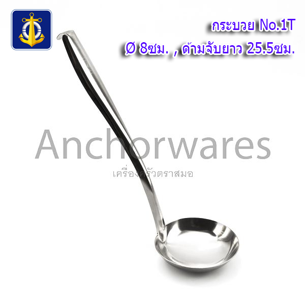 ที่ปลายด้ามมีตะขอเกี่ยว ป้องกันกระบวยลื่นไถลลงในภาชนะ