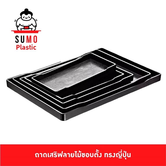 ถาดเสริฟพลาสติก ขอบตั้ง ลายไม้ สไตน์ญี่ปุ่น